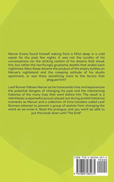 Mercer Evans, a talented junior analyst for a hedge fund who is habitually late for work, starts experiencing vivid dreams that feel more like memories, flashes of places he's never been and people he's never met. But then his uncle sends him an old map with Madagascar circled in red. He thinks it's nothing more than a curious family relic until he realizes there's more to his family's history than he ever imagined. Haunted by his brother's disappearance and driven by a need for answers to the dreams plaguing him, Mercer digs into his ancestry, uncovering a legacy that stretches back centuries. From the modern streets of New York City to the ancient ruins of Wales and the colonial past of Madagascar, Mercer searches to find the answers he seeks. But with every step forward, Mercer and his sister Lizzy find themselves tangled in a deeper mystery, one that powerful forces are desperate to keep hidden. Mercer's dreams reveal hidden truths about his ancestors, secrets tied to pivotal moments in history. As he and Lizzy follow the trail of clues left behind, they discover that some of their family's choices have had far-reaching consequences. And now, Mercer faces an impossible decision: uncover the truth and risk rewriting history-or let the past remain buried. But the past isn't the only thing chasing Mercer. A secret organization that has been manipulating history is watching his every move. If Mercer uncovers too much, he may not live long enough to share what he's found. Set against a backdrop of rich historical landscapes and high-stakes suspense, Leaf Runner is a gripping story about family, legacy, and the power of hidden truths. Perfect for fans of historical thrillers, supernatural mysteries, and stories where the past and present collide, Leaf Runner will keep you guessing until the very last page. Discover the secrets of the past. Face the truth. Read Leaf Runner today.