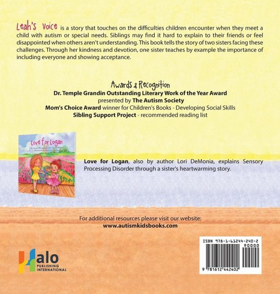 Leah’s Voice is a story that touches on the difficulties children encounter when they meet a child with autism or special needs. Siblings may find it hard to explain to their friends or feel disappointed when others aren't understanding. This book tells the story of two sisters facing these challenges. Through her kindness and devotion, one sister teaches by example the importance of including everyone and showing acceptance.