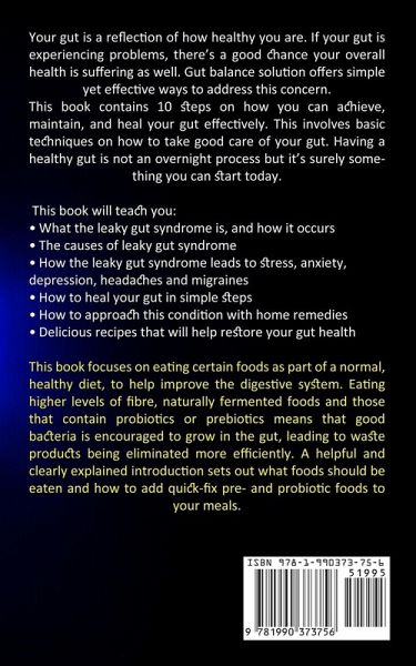 Your gut is a reflection of how healthy you are. If your gut is experiencing problems, there's a good chance your overall health is suffering as well. Gut balance solution offers simple yet effective ways to address this concern. This book contains 10 steps on how you can achieve, maintain, and heal your gut effectively. This involves basic techniques on how to take good care of your gut. Having a healthy gut is not an overnight process but it's surely something you can start today. This book will teach you:What the leaky gut syndrome is, and how it occurs The causes of leaky gut syndrome How the leaky gut syndrome leads to stress, anxiety, depression, headaches and migraines How to heal your gut in simple steps How to approach this condition with home remedies Delicious recipes that will help restore your gut health This book focuses on eating certain foods as part of a normal, healthy diet, to help improve the digestive system. Eating higher levels of fibre, naturally fermented foods and those that contain probiotics or prebiotics means that good bacteria is encouraged to grow in the gut, leading to waste products being eliminated more efficiently. A helpful and clearly explained introduction sets out what foods should be eaten and how to add quick-fix pre- and probiotic foods to your meals.