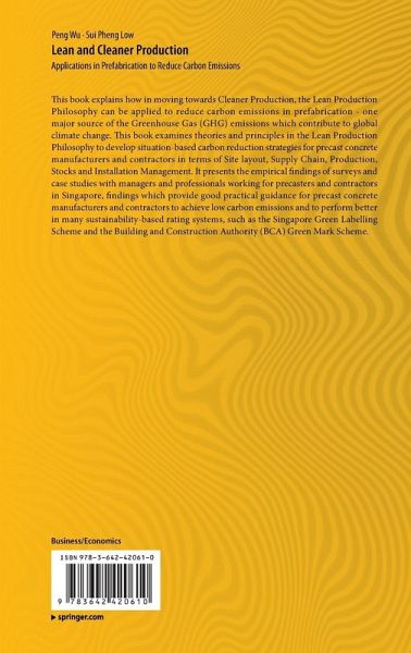 This book explains how in moving towards Cleaner Production, the Lean Production Philosophy can be applied to reduce carbon emissions in prefabrication - one major source of the Greenhouse Gas (GHG) emissions which contribute to global climate change. This book examines theories and principles in the Lean Production Philosophy to develop situation-based carbon reduction strategies for precast concrete manufacturers and contractors in terms of Site layout, Supply Chain, Production, Stocks and Installation Management. It presents the empirical findings of surveys and case studies with managers and professionals working for precasters and contractors in Singapore, findings which provide good practical guidance for precast concrete manufacturers and contractors to achieve low carbon emissions and to perform better in many sustainability-based rating systems, such as the Singapore Green Labelling Scheme and the Building and Construction Authority (BCA) Green Mark Scheme.