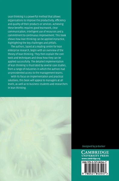 Lean thinking is a powerful method that allows organizations to improve the productivity, efficiency and quality of their products or services. Achieving these benefits requires good teamwork, clear communication, intelligent use of resources and a commitment to continuous improvement. This book shows how lean thinking can be applied in practice, highlighting the key challenges and pitfalls. The authors, based at a leading centre for lean enterprise research, begin with an overview of the theory of lean thinking. They then explain the core tools and techniques and show how they can be applied successfully. The detailed implementation of lean thinking is illustrated by several case studies, from a range of industries, in which the authors had unprecedented access to the management teams. With its focus on implementation and practical solutions, this book will appeal to managers at all levels, as well as to business students and researchers in lean thinking.