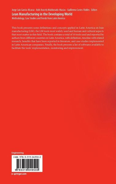This book presents some definitions and concepts applied in Latin America on lean manufacturing (LM), the LM tools most widely used and human and cultural aspects that most matter in this field. The book contains a total of 14 tools used and reported by authors from different countries in Latin America, with definition, timeline with related research, benefits that have been reported in literature and case studies implemented in Latin American companies. Finally, the book presents a list of softwares available to facilitate the tools' implementation, monitoring and improvement.