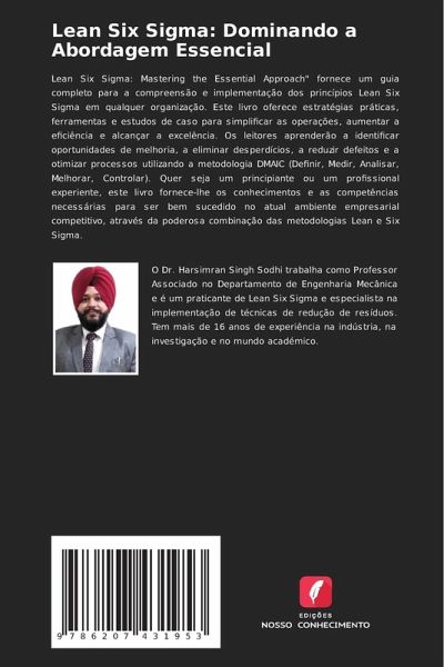 Lean Six Sigma: Mastering the Essential Approach" fornece um guia completo para a compreensão e implementação dos princípios Lean Six Sigma em qualquer organização. Este livro oferece estratégias práticas, ferramentas e estudos de caso para simplificar as operações, aumentar a eficiência e alcançar a excelência. Os leitores aprenderão a identificar oportunidades de melhoria, a eliminar desperdícios, a reduzir defeitos e a otimizar processos utilizando a metodologia DMAIC (Definir, Medir, Analisar, Melhorar, Controlar). Quer seja um principiante ou um profissional experiente, este livro fornece-lhe os conhecimentos e as competências necessárias para ser bem sucedido no atual ambiente empresarial competitivo, através da poderosa combinação das metodologias Lean e Six Sigma.