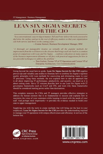 Going beyond the usual how-to guide, Lean Six Sigma Secrets for the CIO supplies proven tips and valuable case studies that illustrate how to combine Six Sigma's rigorous quality principles with Lean methods for uncovering and eliminating waste in IT processes. Savvy IT veterans describe how to use Lean Six Sigma with IT governance frameworks such as COBIT and ITIL and warn why these frameworks should be considered starting points rather than destinations.