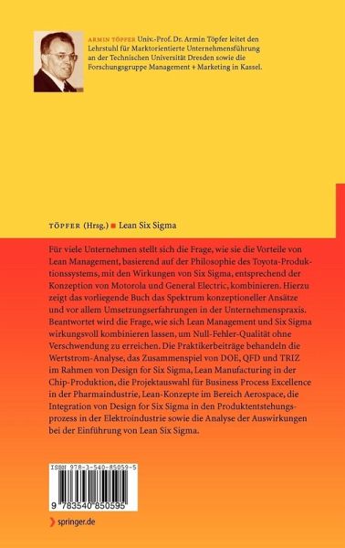 Für viele Unternehmen stellt sich die Frage, wie sie die Vorteile von Lean Management, basierend auf der Philosophie des Toyota-Produktionssystems, mit den Wirkungen von Six Sigma, entsprechend der Konzeption von Motorola und General Electric, kombinieren. Hierzu zeigt das vorliegende Buch das Spektrum konzeptioneller Ansätze und vor allem Umsetzungserfahrungen in der Unternehmenspraxis. Beantwortet wird die Frage, wie sich Lean Management und Six Sigma wirkungsvoll kombinieren lassen, um Null-Fehler-Qualität ohne Verschwendung zu erreichen. Die Praktikerbeiträge behandeln die Wertstrom-Analyse, das Zusammenspiel von DOE, QFD und TRIZ im Rahmen von Design for Six Sigma, Lean Manufacturing in der Chip-Produktion, die Projektauswahl für Business Process Excellence in der Pharmaindustrie, Lean-Konzepte im Bereich Aerospace, die Integration von Design for Six Sigma in den Produktentstehungsprozess in der Elektroindustrie sowie die Analyse der Auswirkungen bei der Einführung von Lean Six Sigma.