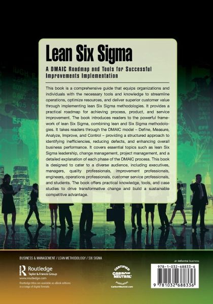 This book is a comprehensive guide that equips organizations and individuals with the necessary tools and knowledge to streamline operations, optimize resources, and deliver superior customer value through implementing lean Six Sigma methodologies. It provides a practical roadmap for achieving process, product, and service improvement. The book introduces readers to the powerful framework of Lean Six Sigma, combining Lean and Six Sigma methodologies. It takes readers through the DMAIC model - Define, Measure, Analyze, Improve, and Control - providing a structured approach to identifying inefficiencies, reducing defects, and enhancing overall business performance. It covers essential topics such as lean Six Sigma leadership, change management, project management, and a detailed explanation of each phase of the DMAIC process.