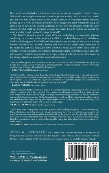 How should the Methodist tradition continue to embody its evangelistic mission? Some believe effective evangelism requires ecclesial adaptation seeking relevance to attract outsiders. But does this strategy result in the church's embrace of consumer market practices, pandering to a world of church shoppers? Others suggest the most evangelistic thing the church can do is to be the church, displaying to the world the attractive beauty of a holy community. But could this ironically distance the church from its context and neglect the many ways the church is called to engage the world? The Wesleys formed a people called Methodist, embodying an evangelistic mission combining commitments to disciplined spiritual life and vital social engagement. In this book, Conklin-Miller suggests faithful (United) Methodist evangelism requires living in the tension between the church and the world, ""leaning both ways at once,"" emphasizing the holiness of the church as a particular people, but at the same time, being a people sent to intercede in the world as servants, advocates, and witnesses. This understanding constitutes not only a broader reframing of evangelistic mission but also a vision for the identity and agency of the church in the Wesleyan tradition: a Methodist missional ecclesiology.
