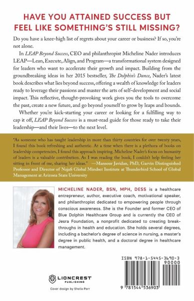 Have you attained success but feel like something's still missing? Do you have a knee-high list of regrets about your career or business? If so, you're not alone. In LEAP Beyond Success, CEO and philanthropist Micheline Nader introduces LEAP-Lean, Execute, Align, and Program-a transformational system designed for leaders who want to accelerate their growth and impact. Building from the groundbreaking ideas in her 2015 bestseller The Dolphin's Dance, Nader's latest book describes what lies beyond success, offering a wealth of knowledge for leaders ready to leverage their passions and master the arts of self-development and social impact. This reflective, thought-provoking work gives you the tools to overcome the past, create a new future, and go beyond yourself to grow by leaps and bounds. Whether you're kickstarting your career or looking for a fulfilling way to cap it off, LEAP Beyond Success is a must-read guide for those ready to take their leadership-and their lives-to the next level.