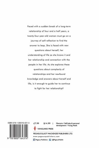 Faced with a sudden break of a long-term relationship of four and a half years, a twenty-four-year-old woman must go on a journey of self-reflection to find the answer to leap. She is faced with new questions about herself, her understanding of life as she knows it and her relationship and connection with the people in her life. As she explores these questions about complexity of relationships and her newfound knowledge and answers about herself and life, is it enough to guide her to continue to fight for her relationship?