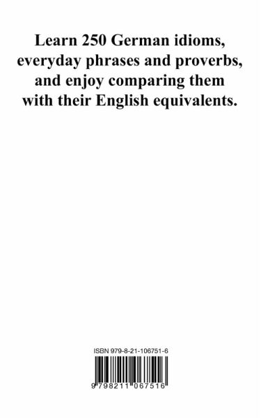Learn German fast: schnell und einfach Deutsch lernen. As you may already know, German is not an easy-to-learn language. The best way to try to master German is to learn by heart its most popular idiomatic expressions. In this book, you will find the corresponding English version above every German "Redewendung". This will help you catch its full meaning in no time. Learn 250 German idioms, everyday phrases and proverbs, and enjoy comparing them with their English counterparts.