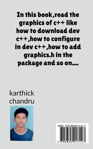 C++ is a powerful general-purpose programming language.expressive programming language that’s easy to learn and fun to use! But books about learning graphics programming in c++ can be kind of dull, gray, and boring, and that’s no fun for anyone. learn grphics in c++ bring c++ to life and brings you into the world of programming. the author karthick chandru will guide you through the basics as you experiment with unique example by the end of the book you will learn to do graphics in c++