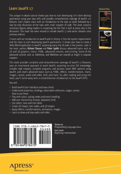 This unique in-depth tutorial shows you how to start developing rich-client desktop applications using your Java skills and provides comprehensive coverage of JavaFX 17's features. Each chapter starts with an introduction to the topic at hand, followed by a step-by-step discussion of the topic with small snippets of code. The book contains numerous figures aiding readers in visualizing the GUI that is built at every step in the discussion. This book has been revised to include JavaFX 17 and earlier releases since previous edition.