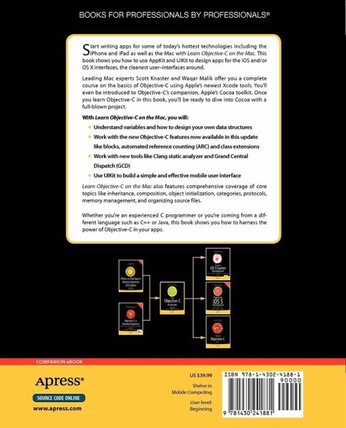 Learn to write apps for some of today's hottest technologies, including the iPhone and iPad (using iOS), as well as the Mac (using OS X). It starts with Objective-C, the base language on which the native iOS software development kit (SDK) and the OS X are based. Learn Objective-C on the Mac: For OS X and iOS, Second Edition updates a best selling book and is an extensive, newly updated guide to Objective-C.