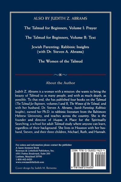 Judith Abrams, author of the highly acclaimed The Talmud for Beginners, Volumes I & II, creates yet another way of making Talmud study easy and accessible for the novice. Rabbi Abrams has chosen to work with the Steinsaltz Edition of the Talmud, edited and with commentary by Adin Steinsaltz, one of the greatest Jewish thinkers of the twentieth century. This volume is a must for both student and teacher.