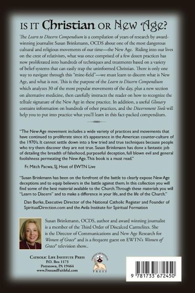 The Learn to Discern Compendium is a compilation of years of research by award-winning journalist Susan Brinkmann OCDS about one of the most dangerous cultural and religious movements of our time - the New Age. Riding into our lives on the crest of relativism, what was once comprised of a few dozen practices has now morphed into hundreds of techniques and treatments based on a variety of belief systems that can easily trap the uninformed Christian. There is only one way to navigate through this "minefield" - we must learn to discern what is New Age, and what is not. This is the purpose of the latest edition of the Learn to Discern Compendium, which now includes a new section on alternative medicine, as well as over 30 of the most popular movements of the day, then carefully instructs the reader on how to recognize the telltale signature of the New Age in each. In addition, an expanded Glossary contains information of hundreds of other practices, and the Discernment Tools will help you to put into practice what you'll learn in this fact-packed compendium.