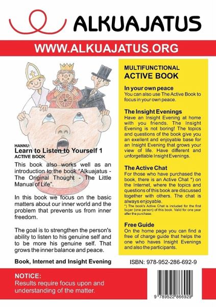 Strengthen your ability to listen to your genuine self and become more your genuine self. Familiarize yourself with the basics of Alkuajatus (The Original Thought), your inner world. Learn a functional way to solve the problem that prevents you from inner freedom. Have Insight Evenings with your friends. A complete package for The Insight Evenings is included. The Insight Evening is a new and different way to have an enjoyable evening together with others. The price also includes participation in The Active Chat, where the topics of the book are discussed. Find out more at www.alkuajatus.org.