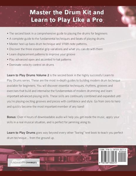 Learn to Play Drums Volume 2 is the second book in the highly successful Learn to Play Drums series. These are the most in-depth guides to building modern drum technique available for beginners. You will discover essential techniques, rhythms, grooves and exercises that build and internalise the fundamentals of modern drumming and learn important advanced playing skills.