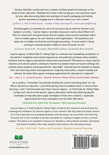Learner Agency: A Field Guide for Taking Flight is a boots-on-the-ground resource for those who wish to foster greater agency for students and adults alike within their classroom, school, or school system. Written by practitioners who have experienced the triumphs and struggles first-hand, the book offers a framework for moving from building knowledge to making meaning and applying the understanding of practices and systems that support agency. As a result, readers can determine a starting point and use the book as a guide to their unique journey through the highlighted enabling conditions and evergreen practices essential to success. This book includes stories from the field, authors' tips and suggestions, and additional online resources provided along the way. Learner Agency is a practical book that reads like a field guide, and educators can immediately implement the strategies and valuable tools in the classroom. It is the hope of the authors that it propels all readers to take flight!