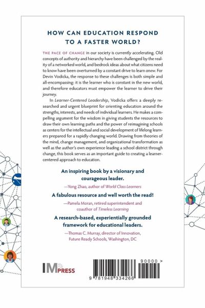 How Can Education Respond to a Faster World? The pace of change in our society is currently accelerating. Old concepts of authority and hierarchy have been challenged by the reality of a networked world, and bedrock ideas about what citizens need to know have been overturned by a constant drive to learn anew. For Devin Vodicka, the response to these challenges is both simple and all-encompassing: it is the learner who is constant in the new world, and therefore educators must empower the learner to drive their journey. In Learner-Centered Leadership, Vodicka offers a deeply researched and urgent blueprint for orienting education around the strengths, interests, and needs of individual learners. He makes a compelling argument for the wisdom in giving students the resources to draw their own learning paths and the power of reimagining schools as centers for the intellectual and social development of lifelong learners prepared for a rapidly changing world. Drawing from theories of the mind, change management, and organizational transformation as well as the author’s own experience leading a school district through change, this book serves as an important guide to creating a learner-centered approach to education. An inspiring book by a visionary and courageous leader. —Yong Zhao, author of World Class Learners A fabulous resource and well worth the read! —Pamela Moran, retired superintendent and coauthor of Timeless Learning A research-based, experientially grounded framework for educational leaders. —Thomas C. Murray, director of Innovation, Future Ready Schools, Washington, DC