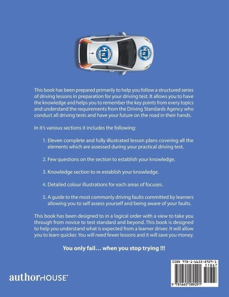 This book has been prepared primarily to help you follow a structured series of driving lessons in preparation for your driving test. It allows you to have the knowledge and helps you to remember the key points from every topics and understand the requirements from the Driving Standards Agency who conduct all driving tests and have your future on the road in their hands. In it's various sections it includes the following: 1.Eleven complete and fully illustrated lesson plans covering all the elements which are assessed during your practical driving test. 2.Few questions on the section to establish your knowledge. 3.Knowledge section to re establish your knowledge. 4.Detailed colour illustrations for each areas of focuses. 5.A guide to the most commonly driving faults committed by learners allowing you to self assess yourself and being aware of your faults. This book has been designed to in a logical order with a view to take you through from novice to test standard and beyond. This book is designed to help you understand what is expected from a learner driver. It will allow you to learn quicker. You will need fewer lessons and it will save you money. You only fail... when you stop trying !!!