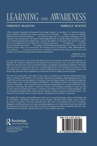 This book stems from more than 25 years of systematic research into the experience of learning undertaken by a research team trying to account for the obvious differences between more or less successful instances of learning in educational institutions. The book offers an answer in terms of the discovery of critical differences in the structure of the learner's awareness and critical differences in the meaning of the learner's world. The authors offer a detailed account of the empirical findings that give rise to theoretical insights, and discuss the particular form of qualitative research that has been employed and developed. The form of learning that is the object of study is considered to be the most fundamental form -- namely a change in the learner's way of seeing, experiencing, handling, and understanding aspects of the world. The need for rigorous analysis of learning of specific subject matter, the individual construction of knowledge, and its social and cultural embeddedness -- the defining features of rival approaches into research on learning -- are reconciled from the approach adopted here into an intertwined and whole experience of learning. The learner's experience is always one of learning something, in some way, and in some context; by holding the learner's experience of learning as the focus of study throughout -- and not studying the learning of the content and the acts and the context as separate and distinct focuses -- the content, the act, and the context remain united as constituents of the learner's experience. By empirically revealing critical differences in the ways of experiencing these aspects of learning, and by developing a theoretical framework for the dynamics through which change comes about in the learner's awareness, this book gradually leads the reader to a powerful new view of learning. Equipped with the analytical tools and conceptual apparatus to be found in this book, the reader will be empowered to learn and to assist others to learn by creating environments conducive to the most fundamental form of learning: experiencing aspects of the world in new ways.