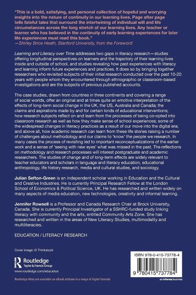 Learning and Literacy over Time addresses two gaps in literacy research-studies offering longitudinal perspectives on learners and the trajectory of their learning lives inside and outside of school, and studies revealing how past experiences with literacy and learning inform future experiences and practices. It does so by bringing together researchers who revisited subjects of their initial research conducted over the past 10-20 years with people whom they encountered through ethnographic or classroom-based investigations and are the subjects of previous published accounts. The case studies, drawn from countries in three continents and covering a range of social worlds, offer an original and at times quite an emotive interpretation of the effects of long-term social change in the UK, the US, Australia and Canada; the claims and aspirations made by and for certain kinds of educational interventions; how research subjects reflect on and learn from the processes of being co-opted into classroom research as well as how they make sense of school experiences; some of the widespread changes in literacy practices as a result of our move into the digital era; and above all, how academic research can learn from these life stories raising a number of challenges about methodology and our claims to 'know' the people we research. In many cases the process of revisiting led to important reconceptualizations of the earlier work and a sense of 'seeing with new eyes' what was missed in the past. The reflections on methodology and research processes will interest postgraduate and academic researchers. The studies of change and of long-term effects are widely relevant to teacher educators and scholars in language and literacy education, educational anthropology, life history research, media and cultural studies, and sociology.