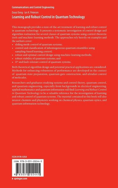 Researchers and graduates studying systems and control theory, quantum control,and quantum engineering, especially from backgrounds in electrical engineering, applied mathematics and quantum information will find Learning and Robust Control in Quantum Technology to be a valuable reference for the investigation of learning and robust control of quantum systems. The material contained in this book will also interest chemists and physicists working on chemical physics, quantum optics, and quantum information technology.