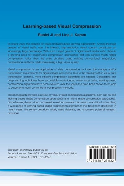 In recent years, the demand for visual media has been growing exponentially. Among the large amount of visual traffic over the Internet, high-resolution visual content constitutes an increasingly large percentage. With such a rapid growth of digital visual media traffic, there is a growing need for image/video compression approaches that can achieve much higher compression ratios than the ones obtained using existing conventional image/video compression methods, while maintaining a high visual quality. Visual compression is an application of data compression to lower the storage and/or transmission requirements for digital images and videos. Due to the rapid growth in visual data transmission demand, more efficient compression algorithms are needed. Considering that deep learning techniques have successfully revolutionized many visual tasks, learning-based compression algorithms have been explored over the years and have been shown to be able to outperform many conventional compression methods. This monograph provides a review of various visual compression algorithms, both end-to-end learning-based image compression approaches and hybrid image compression approaches. Some learning-based video compression methods are also discussed. In addition to describing a wide range of learning-based image compression approaches that have been developed in recent years, the survey describes widely used datasets, and discusses potential research directions.