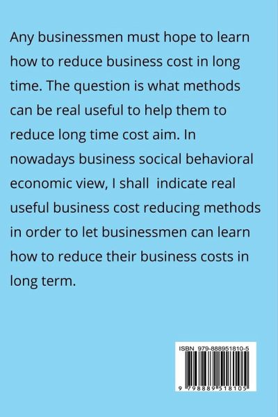 Introduction Nowadays, business society is experiencing high technology stage. Can human apply AI technology to help businessmen to reduce cost. Any businessmen must hope to learn how to reduce business cost in long time. The question is what methods can be real useful to help them to reduce long time cost aim. In nowadays business socical behavioral economic view, I shall indicate real useful business cost reducing methods in order to let businessmen can learn how to reduce their business costs in long term. How and why technology may help human to improve talent job behavior ? What methods may help human to create clever as well as creative ability? What method may improve organizational performance ? I shall indicate robot technology invention how to train human creative ability , also I shall explain whether robot tool may help human to improve economy development or help businessmen to reduce cost, I shall explain what skills may help human to raise clever, I shall explain what method may help organizations to improve performance. Readers can learn new knowledge how to improve human development. In my this book, I shall attempt to explain how and why human may apply AI machine or other methods to help our business activities to reduce long term cost. Readers can learn fresh behavioral economic knowledge whether businessmen may choose what methods to help them to reduce business cost.