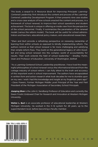 «Shen and Burt provide a refreshing perspective on renewing ownership of learning from within schools as opposed to blindly implementing reform. The authors remind us that school renewal is far more challenging and satisfying than simple reform fixes. They build on the generational legacy of John Goodlad and bring school renewal into the complex world of accountability forresults. Their work extends the field of school leadership.» (Bradley Portin, Dean and Professor of Education, University of Washington, Bothell) «As a Learning-Centered School Leadership practitioner, I have lived the meaningful philosophies of school renewal versus the informational blizzard from the cottage industry of school reform. I can fully attest to the truth and accuracy of this important work in school improvement. The authors have encapsulated in written form and action research what took decades for me to stumble upon on my own. I wish I had this knowledge and insight at my fingertips years ago!» (Dave Powers, Former Michigan Middle Level Principal of the Year and Past President of the Michigan Association of Secondary School Principals)