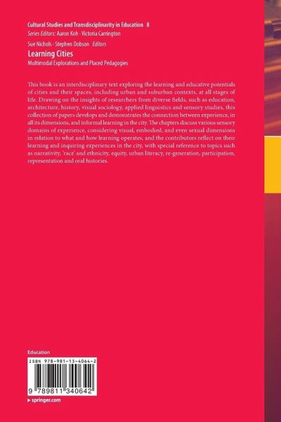 1 Learning cities: Introduction.- Part 1 Multimodal explorations of the city.- 2 Researching and photographing cities: Getting started.- 3 Coming to our sense: Multiculturalism, urban sociology, and 'the other' senses.- 4 English literacies in Medellín: The city as literacy.- 5 Who is a city for? Reflections on children's narrative and design-led explorations.- 6 Signs of the city - Metropolis Speaking: Art-inspired youth and diversity in four European cities.- 7 Walking through spiritual neighbourhoods: A photo essay.- Part 2 Urban Pedagogies.- 8 Urban pedagogy and the need to develop city skills.- 9 Commercial ethnography: What are education researchers doing in the mall?.- 10 Learning around iconic buildings: Maps of experience in the making.- 11 Spaces of informal learning and cultures of translation and marginality in London's Jewish East End.- 12 Learning the sexual city.- 13 Learning in/from 'disadvantaged' communities: Connecting people and sites of learning.- 14 Learning how to smell a rat and identify the spaces: Community-based education and urban renewal.- 15 Afterword.