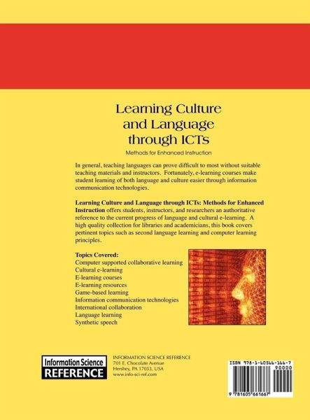 In general, teaching languages can prove difficult to most without suitable teaching materials and instructors. Fortunately, e-learning courses make student learning of both language and culture easier through information communication technologies. Learning Culture and Language through ICTs: Methods for Enhanced Instruction offers students, instructors, and researchers an authoritative reference to the current progress of language and cultural e-learning. A high quality collection for libraries and academicians, this book covers pertinent topics such as second language learning and computer learning principles.