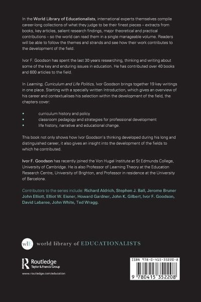 As schooling has become more commodity-based, the place and position of learning and curriculum has been transformed and new perspectives are needed to understand these rapidly changing times. By studying life histories and life politics we can gain insights into the relationship between peoples' private missions and meanings and their public tasks and targets. For the last thirty years, Ivor Goodson has been researching, thinking and writing about some of the central and enduring issues in education, contributing over forty books and six hundred articles to the field. This single volume brings together twenty of his key pieces for the first time. Ivor Goodson opens with an autobiographical introduction to a range of curriculum studies which pioneered a new way of studying schooling and he contextualises his selection within the development of the field. Chapters in this prestigious book cover: curriculum history and policy classroom pedagogy and strategies for professional development life history, narrative and educational change.