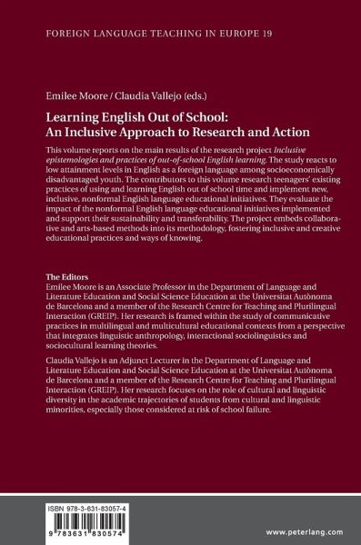This volume reports on the main results of the research project Inclusive epistemologies and practices of out-of-school English learning. The study reacts to low attainment levels in English as a foreign language among socioeconomically disadvantaged youth. The contributors to this volume research teenagers' existing practices of using and learning English out of school time and implement new, inclusive, nonformal English language educational initiatives. They evaluate the impact of the nonformal English language educational initiatives implemented and support their sustainability and transferability. The project embeds collaborative and arts-based methods into its methodology, fostering inclusive and creative educational practices and ways of knowing.
