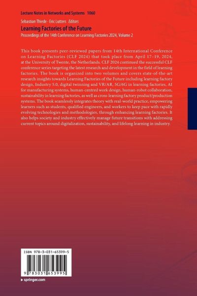 This book presents peer-reviewed papers from 14th International Conference on Learning Factories (CLF 2024) that took place from April 17-19, 2024, at the University of Twente, the Netherlands. CLF 2024 continued the successful CLF conference series targeting the latest research and development in the field of learning factories. The book is organized into two volumes and covers state-of-the-art research insights towards Learning Factories of the Future including learning factory design, Industry 5.0, digital twinning and VR/AR, 5G/6G in learning factories, AI for manufacturing systems, human-centred work design, human-robot collaboration, sustainability in learning factories, as well as cross-learning factory product/production systems. The book seamlessly integrates theory with real-world practice, empowering learners such as students, qualified engineers, and workers to keep pace with rapidly evolving technologies and methodologies, through enhancing learning factories. Italso helps society and industry effectively manage future transitions with addressing current topics around digitalization, sustainability, and lifelong learning in industry.