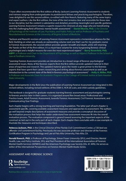 Major developments in the field since the publication of Learning Forensic Assessment are integrated in this revised edition, including revised editions of the DSM-5, HCR-20 scale, and child custody guidelines. This textbook is designed for graduate students learning forensic assessment and psychologists coming to forensic practice later in their careers. It is organized around five broad areas: Professional and Practice Issues, Adult Forensic Assessment, Juvenile Forensic Assessment, Civil Forensic Assessment, and Communicating Your Findings. Each chapter begins with a strong teaching and learning foundation. The latter part of each chapter is assessment specific, covering available assessment measures and approaches to assessment. The authors go well beyond simple descriptions of assessment measures and provide a conceptual discussion of the evaluation process that helps the reader understand how assessment measures fit into the overall evaluation process. The evaluation component is geared toward assessing the important aspects of the construct as laid out in the early part of each chapter. Each chapter then concludes with a case example to illustrate the measures and techniques described. --