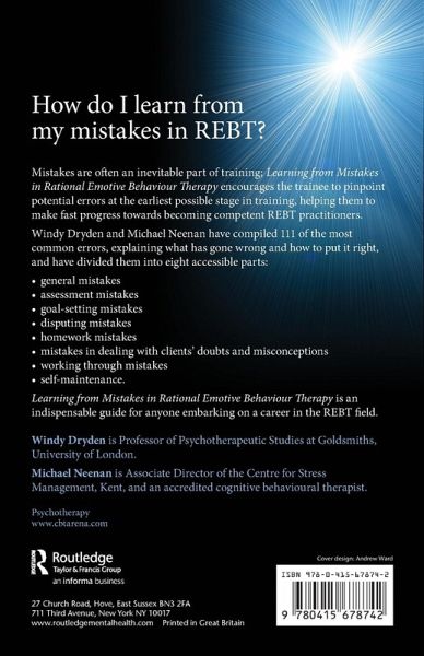 Mistakes are often an inevitable part of training; Learning from Mistakes in Rational Emotive Behaviour Therapy encourages the trainee to pinpoint potential errors at the earliest possible stage in training, helping them to make fast progress towards becoming competent REBT practitioners. Windy Dryden and Michael Neenan have compiled 111 of the most common errors, explaining what has gone wrong and how to put it right, and have divided them into eight accessible parts: general mistakes assessment mistakes goal-setting mistakes disputing mistakes homework mistakes mistakes in dealing with client doubts and misconceptions working through mistakes self-maintenance. Learning from Mistakes in Rational Emotive Behaviour Therapy is an indispensable guide for anyone embarking on a career in the REBT field.
