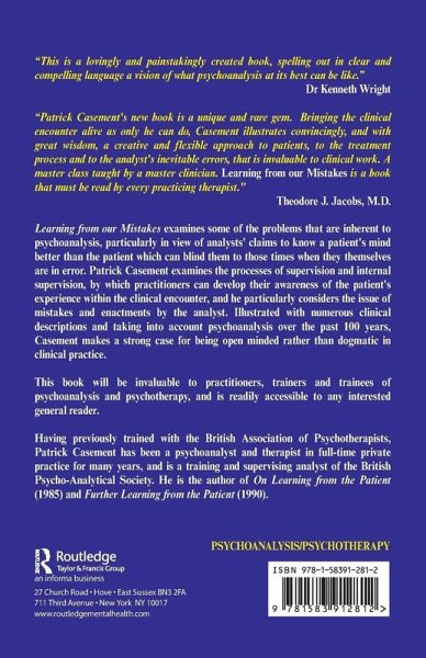 Patrick Casement is a psychoanalyst and therapist, and is a member of the British Psycho-Analytical Society and of the British Assocation of Psychotherapists. He is the author of On Learning from the Patient(1985) and Further Learning from the Patient(1990).