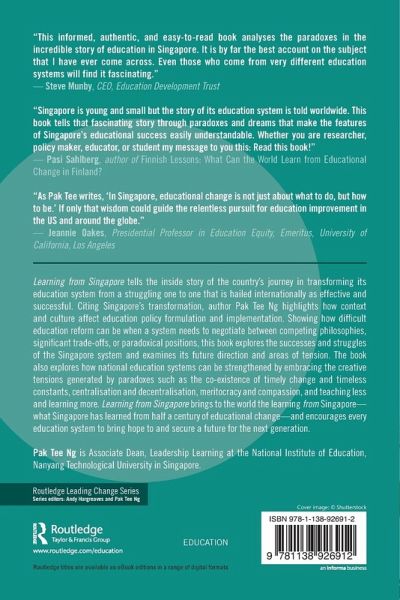 As Pak Tee writes, "In Singapore, educational change is not just about what to do, but how to be." If only that wisdom could guide the relentless pursuit for education improvement in the US and around the globe. - Jeannie Oakes, Presidential Professor in Education Equity, Emeritus, University of California, Los Angeles