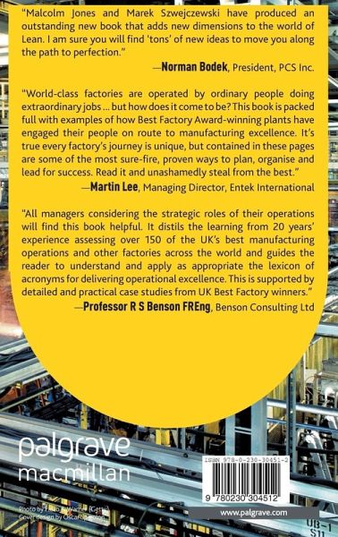 MAREK SZWEJCZEWSKI is a Reader in Innovation and Operations Management, and he is also Director of the renowned Best Factory Awards. Prior to joining Cranfield, Marek worked for several years in industry, he held management positions in a variety of industries ranging from retail to telecommunications. As Director of the Best Factory Awards programme, he has received significant public and private funding for his research on factory performance in the UK and has co-authored several major reports. He is also Director of the Global Manufacturing Roundtable, the roundtable's researchers work with manufacturing companies on projects to improve operational competitiveness and performance. Marek has been involved in various large research projects; he was co-investigator on a major European Commission project examining the impact of organisational innovation on performance. He has also led a major research project, funded by European Pharmaceutical companies, which investigated best practice in innovation management. One element of the project examined which new market research techniques (such as ethnography) were being used by innovative companies. Marek has published extensively in both academic (e.g. Journal of Operations Management and International Journal of Operations and Production Management) and practitioner journals. He has authored numerous articles and reports on supplier management, innovation, manufacturing performance, and manufacturing strategy.He has advised a wide range of organisations, including Dairy Crest, Pilkington and Schering. Marek's current research interests are manufacturing strategy, identifying customer hidden needs, supplier management, sustaining change initiatives, and new product portfolio management. MALCOLM JONES began his studies of World Class Manufacturing in 1986 and has worked in Western and Eastern Europe, North America and the Far East providing facilitation, training and consultancy in these approaches. This book is a synthesis of 25 years' action learning and reflection on implementation in a wide variety of industries. He has previously edited two volumes translated from the work of the TP Management Group of the Japan Management Association and produced the 5S Improvement Handbook for Productivity Europe.