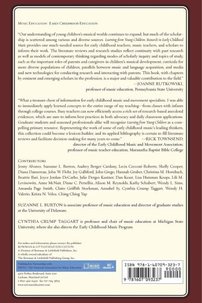 Learning from Young Children: Research in Early Childhood Music presents research on the importance of fostering musical growth during early childhood. With research designs ranging from statistical, mixed methods, survey, content analysis, and case study, to philosophical inquiry, this book will practitioners base their practice in research and offers a wide range of information for scholars and researchers studying early childhood music learning and development.