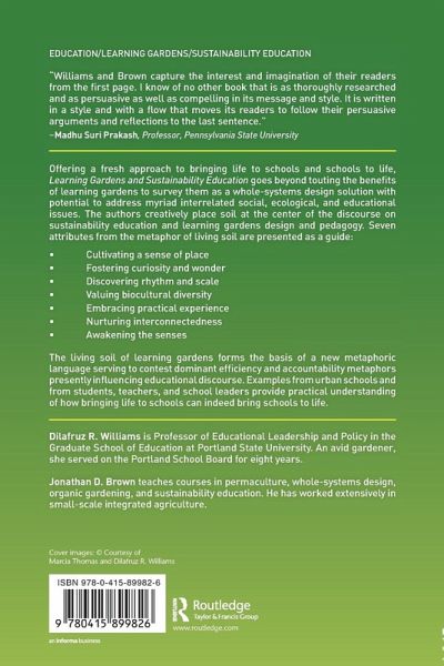Offering a fresh approach to bringing life to schools and schools to life, this book goes beyond touting the benefits of learning gardens to survey them as a whole-systems design solution with potential to address myriad interrelated social, ecological, and educational issues. The theoretical and conceptual framework presented creatively places soil at the center of the discourse on sustainability education and learning garden design and pedagogy. Seven elements and attributes of living soil and learning gardens are presented as a guide for sustainability education: cultivating a sense of place; fostering curiosity and wonder; discovering rhythm and scale; valuing biocultural diversity; embracing practical experience ; nurturing interconnectedness. The living soil of learning gardens forms the basis of a new metaphoric language serving to contest dominant mechanistic metaphors presently influencing educational discourse. Student voices and examples from urban schools provide practical understanding of how bringing life to schools can indeed bring schools to life.