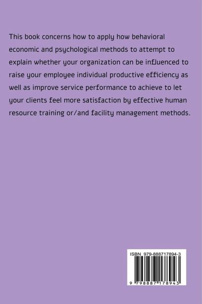 I write this book aims to hope any organization leaders can attempt to apply psychological methods to predict whether their in-house facility management service is enough or/and human resource management strategy and training course program strategies which both have relationship to influence their employees’ productive efficiency and service performance in order to achieve aim to raise more satisfactory feeling to their customers. I believe that effective facility management can improve better workplace environment to influence employee individual productive efficiency raising as well as effective human resource training course program can improve employee individual service performance in order to achieve customers to feel more satisfactory service performance in consequence for the organization’s service.