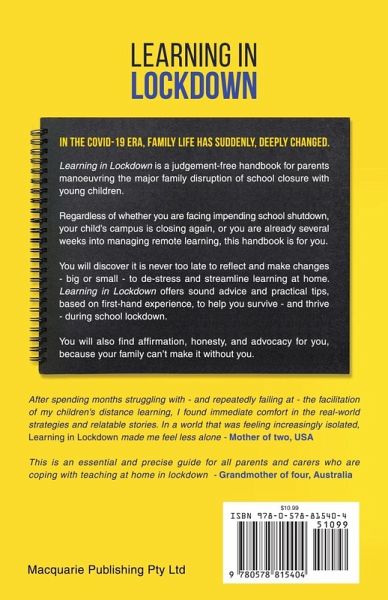Learning in Lockdown is a judgment-free handbook for parents manoeuvring through the major family disruption of a school closure. Regardless of whether you are facing impending school shutdown, your campus is closing again, or you are now several weeks into managing remote learning, this handbook is for you. You will find that it is never too late to reflect and make changes - whether big or small - to de-stress and streamline learning at home with young children. IN THE COVID-19 ERA FAMILY LIFE HAS SUDDENLY AND DEEPLY CHANGED. Hailed by parents as "validating" and "confidence building", it contains sound advice and practical tips, based on first-hand experience. Its message resonates with parents anywhere that schools have shut their gates and remote learning at home has begun. Among Learning in Lockdown's most valuable insights: How to prepare your children for remote learning, and design a positive learning environment at home How to motivate your child - and keep them motivated Why routines can make or break your home during lockdown What your child's teacher expects of you, and what you need from them Why self-care and keeping remote learning in perspective is so important right now How to design learning at home so that your child increases their independence and finds their own version of success And you will also find affirmation, honesty and advocacy for you because your family can't make it without you. "After months of struggling with (and repeatedly failing at) the facilitation of my own children's distance learning, its sound advice, real-world strategies, and relatable stories offered me immediate comfort. In a world that was feeling increasingly isolated, Learning in Lockdown made me feel less alone" - Mother of two, USA "As an educator myself, I naively believed I was well-equipped to facilitate my own children's distance learning. Instead, two weeks into lockdown, I found myself overwhelmed, ill-prepared, and ready to throw in the towel. Learning in Lockdown could not have landed in my lap at a better time. It spoke to, and validated, the many emotions and experiences our family was undergoing. It might be an overstatement to say that Learning in Lockdown saved our family this year...but I don't think so" - Mother of two & qualified high school teacher, USA ... "Learning in Lockdown offered me the confidence and real-world strategies to tackle distance learning with relative ease" - Grandmother of four, Australia