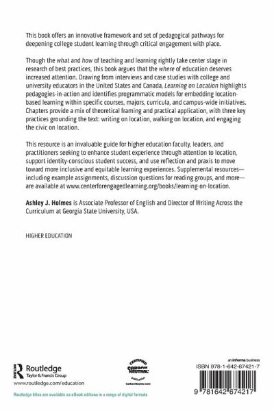 "The publication of Ashley Holmes' Learning on Location: Place-Based Education for Diverse Learners has a special kind of timeliness to it. Just as campus stakeholders of all varieties are returning more fully to classrooms, Holmes shows us how locations writ large-from traditional public spaces to local, almost unnoticed neighborhoods-serve as new classrooms. Highlighting assignments from several disciplines and their role in place-based learning, Holmes demonstrates how the extracurricular classroom provides students with authentic opportunities to connect academic learning, lived experience, and identity in a new and innovative contextualized practice."