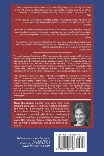 This work captures the voices of TFA novices who offer candid accounts of their experiences in becoming Teach For America Teachers. Previously unanswered questions are addressed: Why do recent college graduates apply to Teach For America? How are they recruited, trained, and hired? How do they learn the culture (s) of the community, schools, grade level, curriculum, and children they teach? Is there a "culture" of the TFA organization? What recommendations do they offer to TFA donors, policy-makers, future corps members and the public? Woven into this book, are perspectives from mentors who worked alongside TFAers, administrators who hired them, corporate C.E.O.'s who supported them, and policies (both local and national) that privileged TFA over non-TFA teachers. Finally, a compelling series of eyewitness narratives introduces each chapter's theme, documented from the author's own, "Notes from the Field." These accounts offer rich, descriptive vignettes that present the challenges TFAers faced, as they occurred. Schools reflect the multi-tiered and often non-level playing field that comprises America's educational landscape. Learning on Other People's Kids: Becoming a Teach For America Teacher provides readers a glimpse into the corps member experience in a rare ethnographic account.