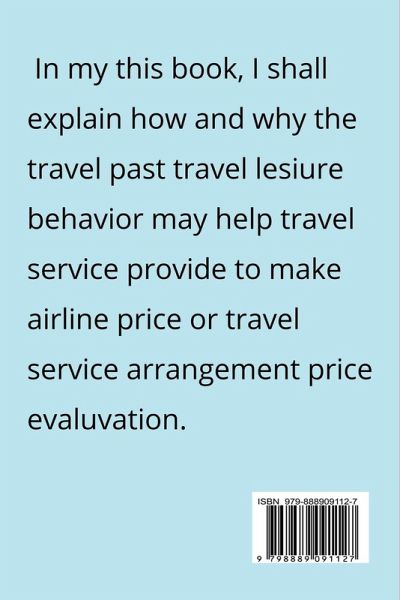 How any why traveller individual travelling choice won't be influenced by travelling entertainment service price only? Does it mean the travelling entertainment service providers will not reduce their traveller number when they can respect or consider above factors to avoid to bring negative influence to traveller consumers, but they still change higher travelling entertainment arrangement service fee to them? In my this book, I shall explain how and why the travel past travel lesiure behavior may help travel service provide to make airline price or travel service arrangement price evaluvation.