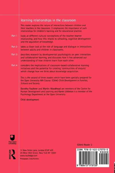 This reader explores the nature of interactions between children and their teachers in the classroom. It emphasises the importance of such relationships for children's learning and for educational practice. Part 1 looks at different cultural conceptions of the teacher-learner relationship, and how this relates to schooling, cognitive development and the aquisition of knowledge. Part 2 takes a closer look at the role of language and dialogue in interactions between adults and children in classrooms. Part 3 describes research by developmental psychologists on peer interaction and collaborative learning, and discusses how it has advanced our understanding of how children learn from each other. Part 4 considers the implications of classroom-based collaborative learning initiatives and the potential for creating 'communities of enquiry' which change how we think about knowledge acquisition.