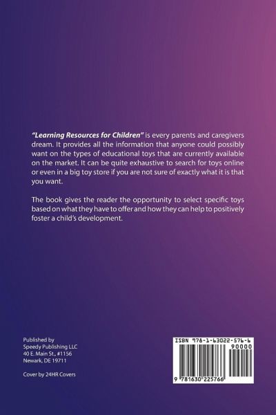 "Learning Resources for Children" is every parents and caregivers dream. It provides all the information that anyone could possibly want on the types of educational toys that are currently available on the market. It can be quite exhaustive to search for toys online or even in a big toy store if you are not sure of exactly what it is that you want. The book gives the reader the opportunity to select specific toys based on what they have to offer and how they can help to positively foster a child's development.
