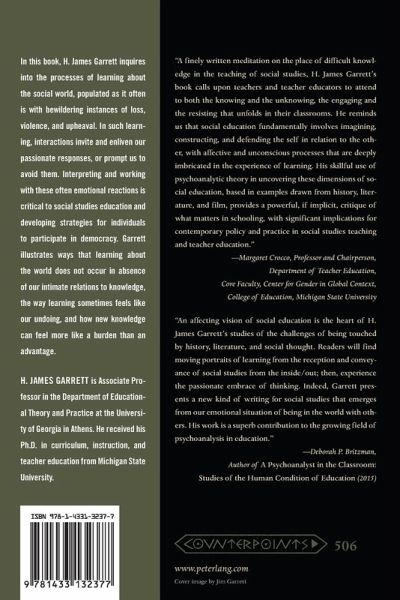 In this book, H. James Garrett inquires into the processes of learning about the social world, populated as it often is with bewildering instances of loss, violence, and upheaval. In such learning, interactions invite and enliven our passionate responses, or prompt us to avoid them. Interpreting and working with these often emotional reactions is critical to social studies education and developing strategies for individuals to participate in democracy. Garrett illustrates ways that learning about the world does not occur in absence of our intimate relations to knowledge, the way learning sometimes feels like our undoing, and how new knowledge can feel more like a burden than an advantage.